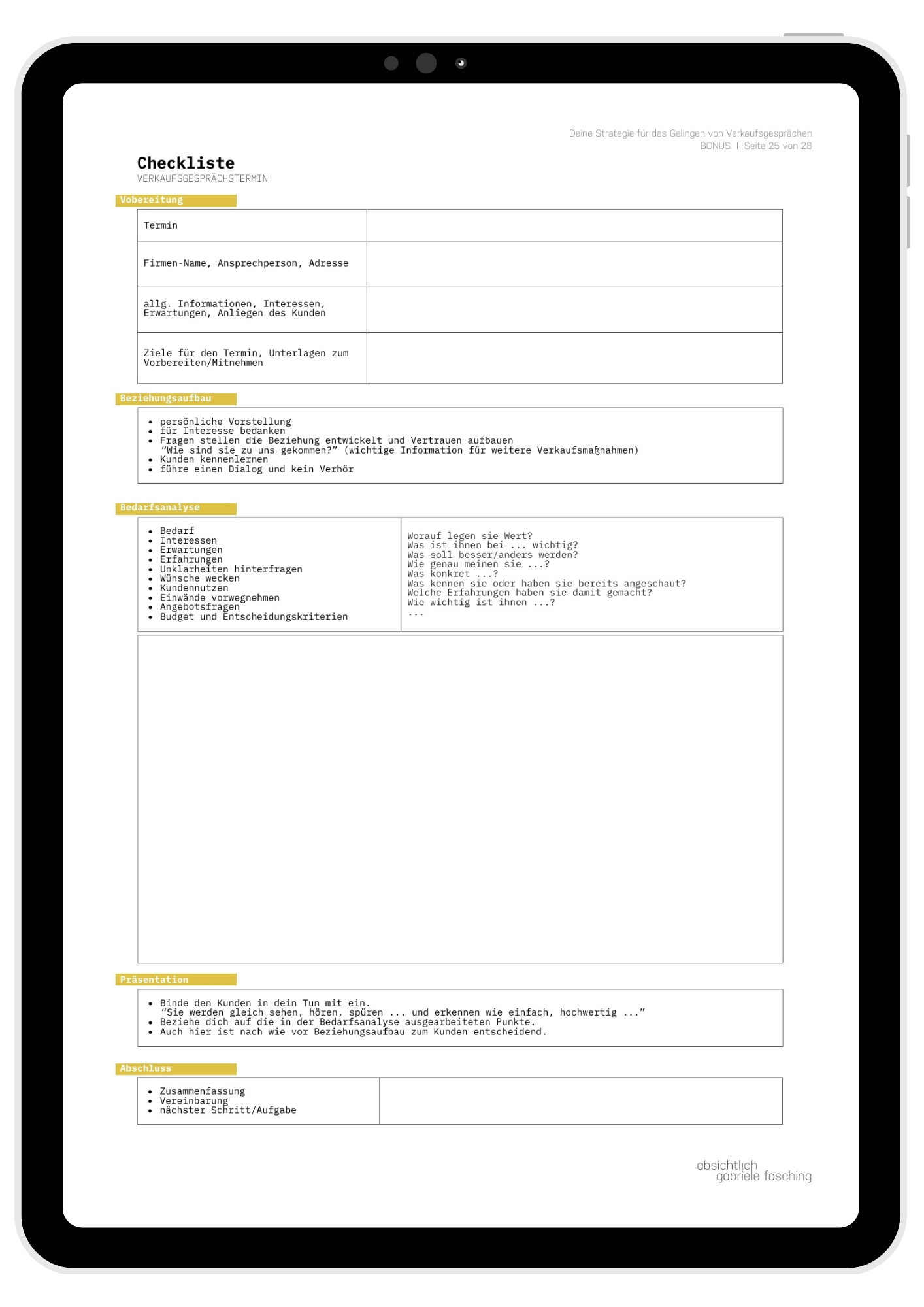 Eine Checkliste für jedes Verkaufsgespräch, und
